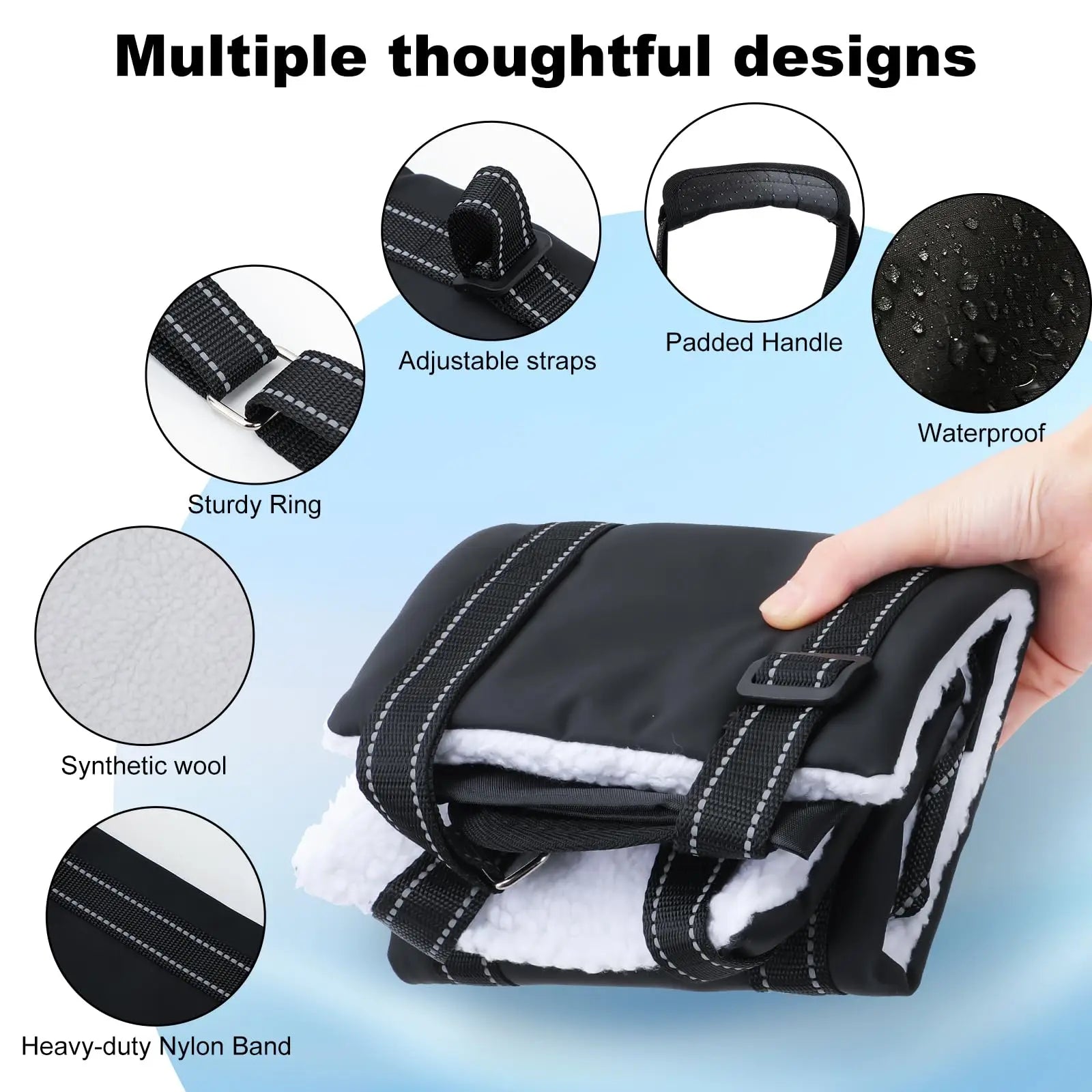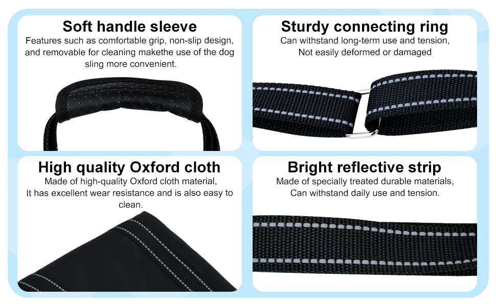 - Solidité : La structure est traversée par une bande en nylon robuste capable de supporter le poids de n'importe quelle race ("Hold The Weight Of Any Breed").